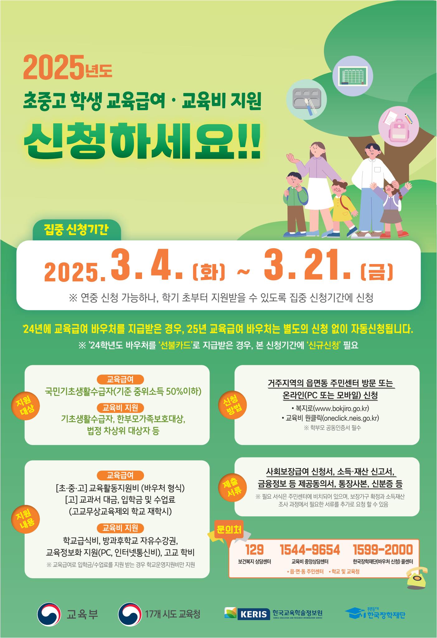 2025학년도 교육급여, 교육비 집중신청기간 홍보