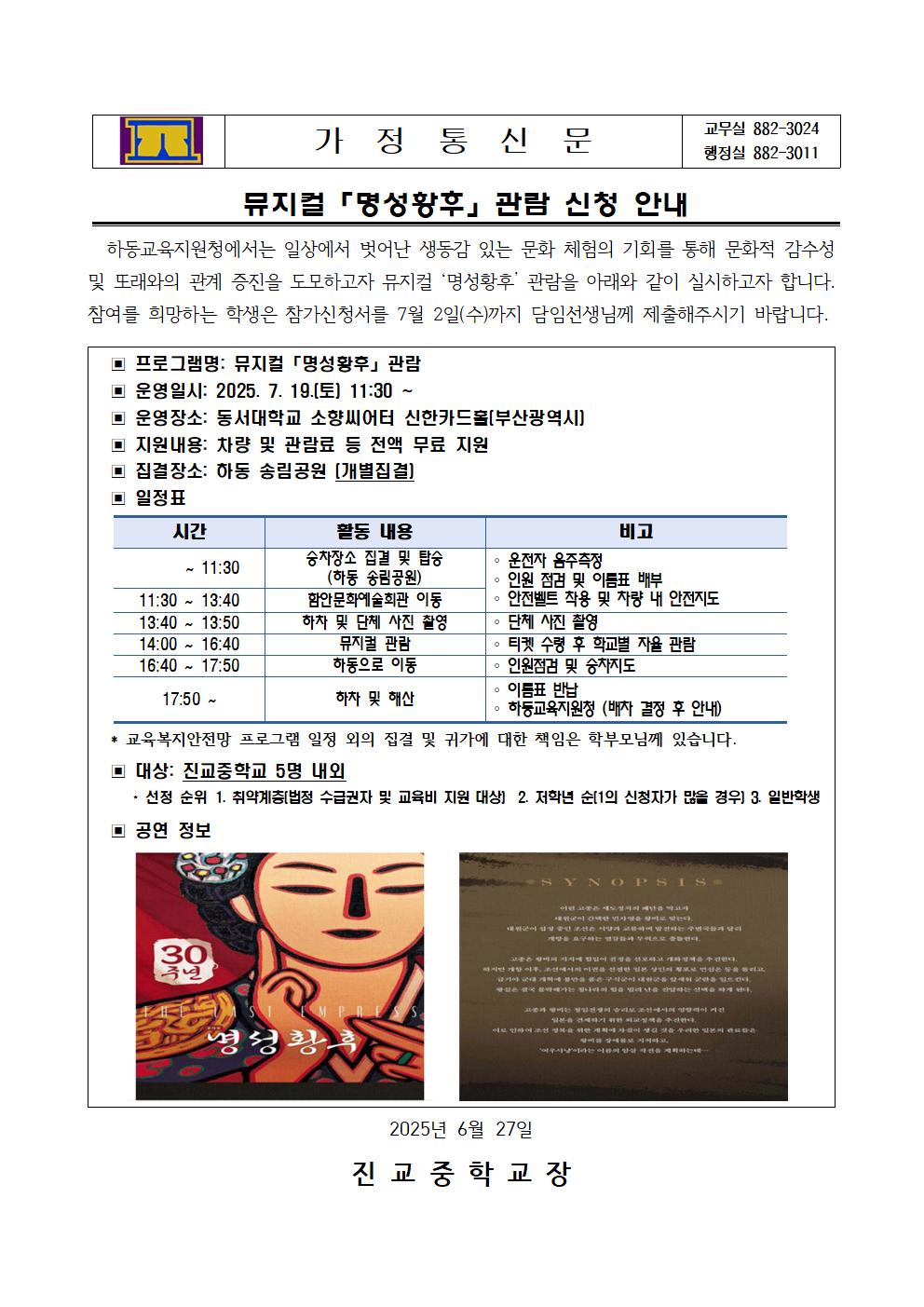 문화적 감수성 및 또래와의 관계 증진을 도모하고자 뮤지컬 '명성황후' 관람을