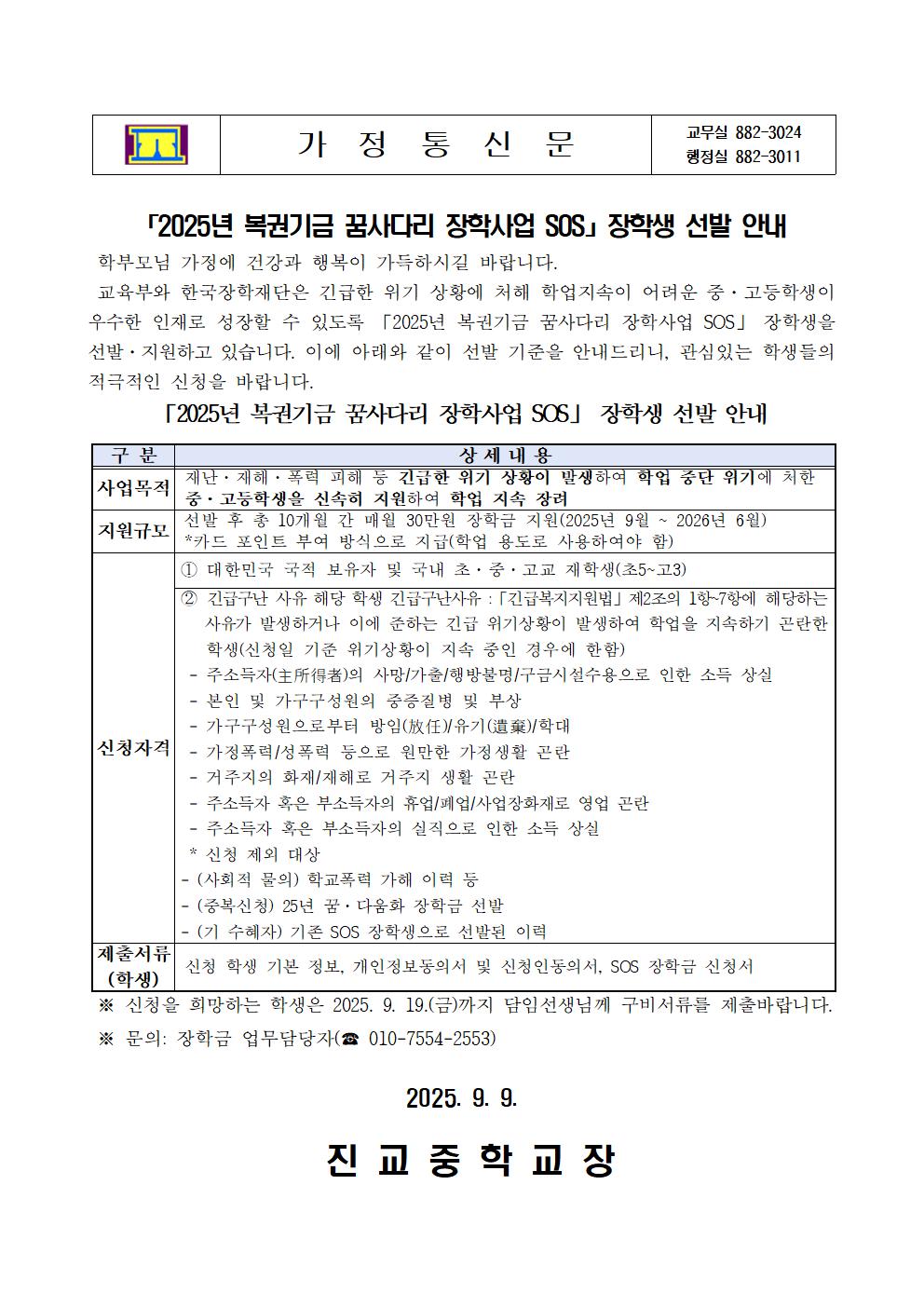 가정통신문(2025. 복권기금 꿈사다리 장학사업 SOS 신규장학생 선발 안내).pdf